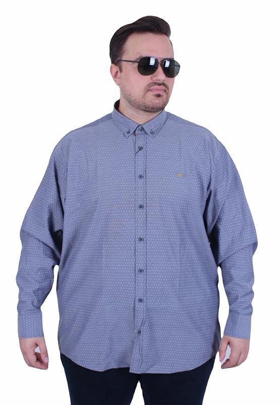 Mocgrande Erkek Büyük Beden Cepsiz Desenli Nakışlı Gömlek 11364 GRI (25M.CAS.UG.GMU.11364.001-GRI)