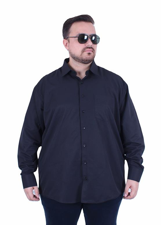 Mocgrande Erkek Büyük Beden Klasik Cepsiz Armürlü Gömlek 11361 SIYAH (25M.CAS.UG.GMU.11361.001-SYH)