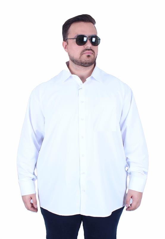 Mocgrande Erkek Büyük Beden Klasik Cepsiz Gömlek 11363 BEYAZ (25M.CAS.UG.GMU.11363.001-BEY)