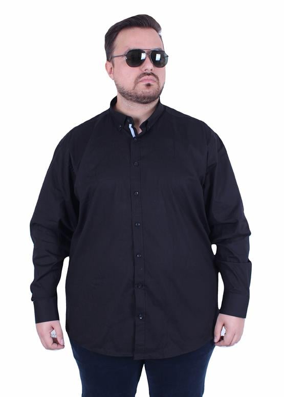 Mocgrande Erkek Büyük Beden Likralı Poplin Gömlek 11354 SIYAH (BSC.CAS.UG.GMU.11354.1-SYH)