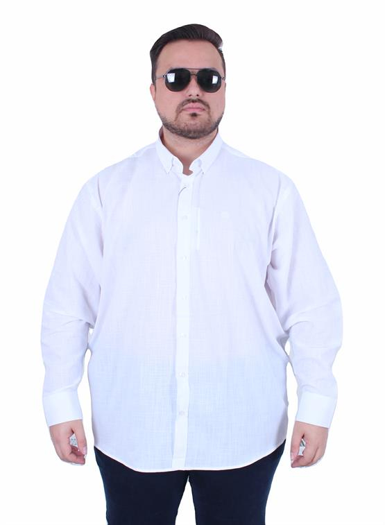Mocgrande Erkek Büyük Beden Pamuk Keten Flam Gömlek 11353 BEYAZ (BSC.CAS.UG.GMU.11353.1-BEY)