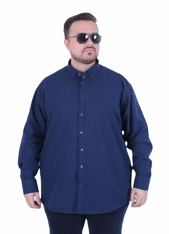 Mocgrande Erkek Büyük Beden Pamuk Keten Flam Gömlek 11353 LACIVERT (BSC.CAS.UG.GMU.11353.1-LAC)