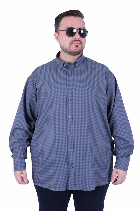 Mocgrande Erkek Büyük Beden Pitikareli Cepsiz Gömlek 11358 GRI (25M.CAS.UG.GMU.11358.001-GRI)