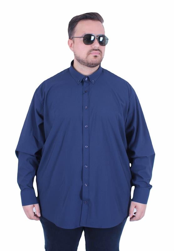 Mocgrande Erkek Büyük Beden Yaka Düğmeli Cepsiz Armürlü Gömlek 11359 LACIVERT (25M.CAS.UG.GMU.11359.001-LAC)