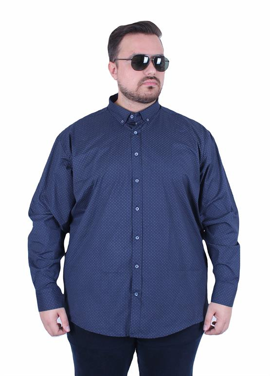 Mocgrande Erkek Büyük Beden Yaka Düğmeli Cepsiz Noktalı Gömlek 11360 LACIVERT (25M.CAS.UG.GMU.11360.001-LAC)